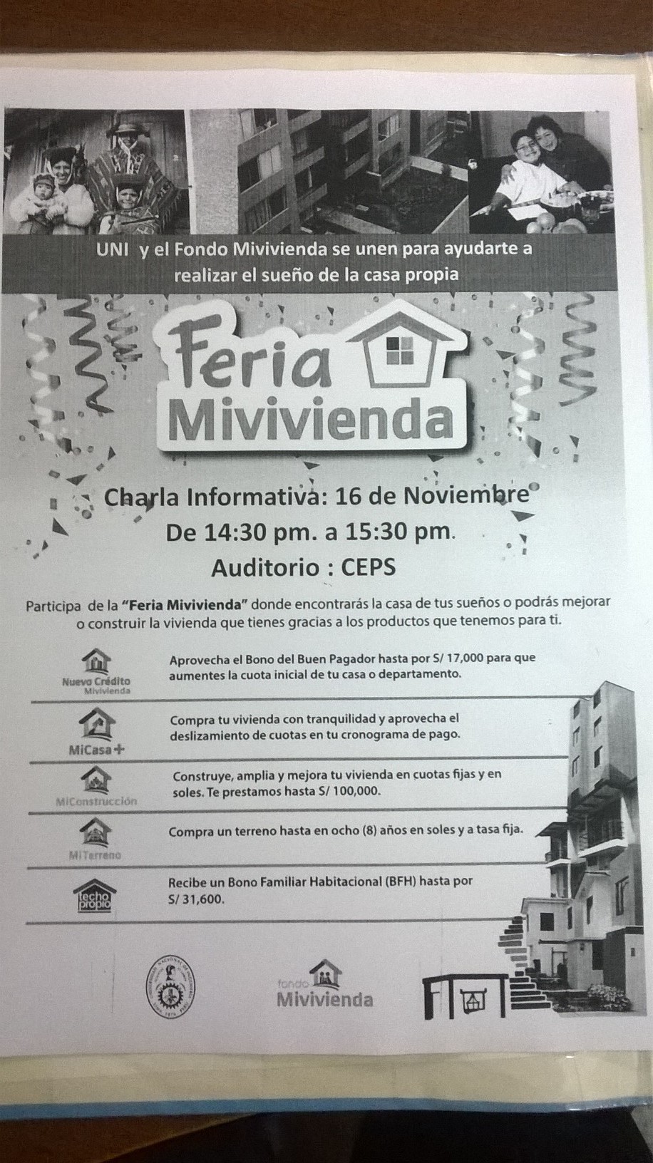 Mar Nov 15 Feria Mi vivienda Charla Informativa Published in Eventos Read 1538 times Print Email Detalles: Fecha: Miercoles 16/11/2015 Rate this item 1 2 3 4 5 (0 votes) Tweet